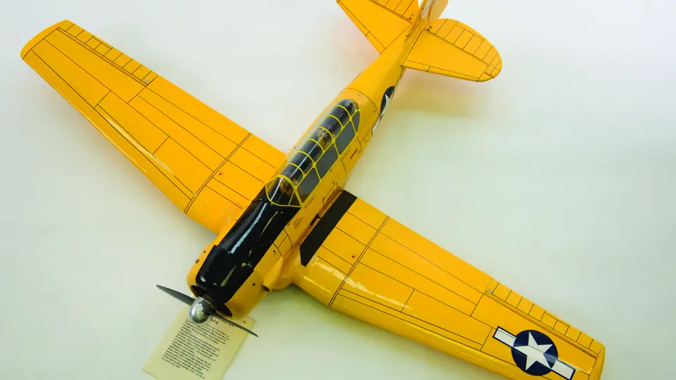 Now a static model this was once successfully flown as a six channel radio operated airplane powered by a 1.2 cubic in., two cycle engine. The wingspan is approximately 7 feet.