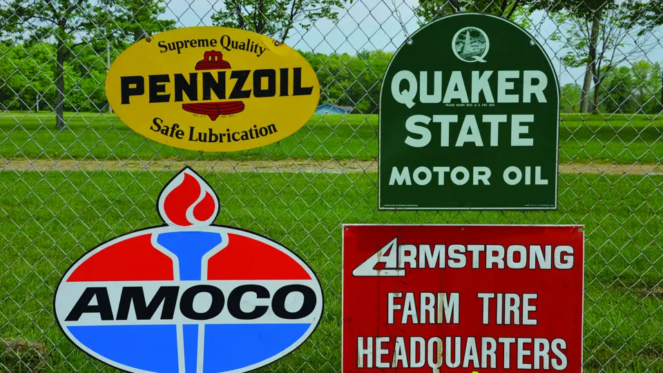 Pennzoil, Quaker State, Amoco and Armstrong Farm Tires signs