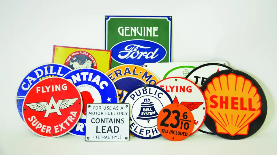 Featuring Flying A, AC Spark Plug, GMC motor trucks, Shell, Texaco, Pontiac, Cadillac, Cities Service, Cool Motor and Ford