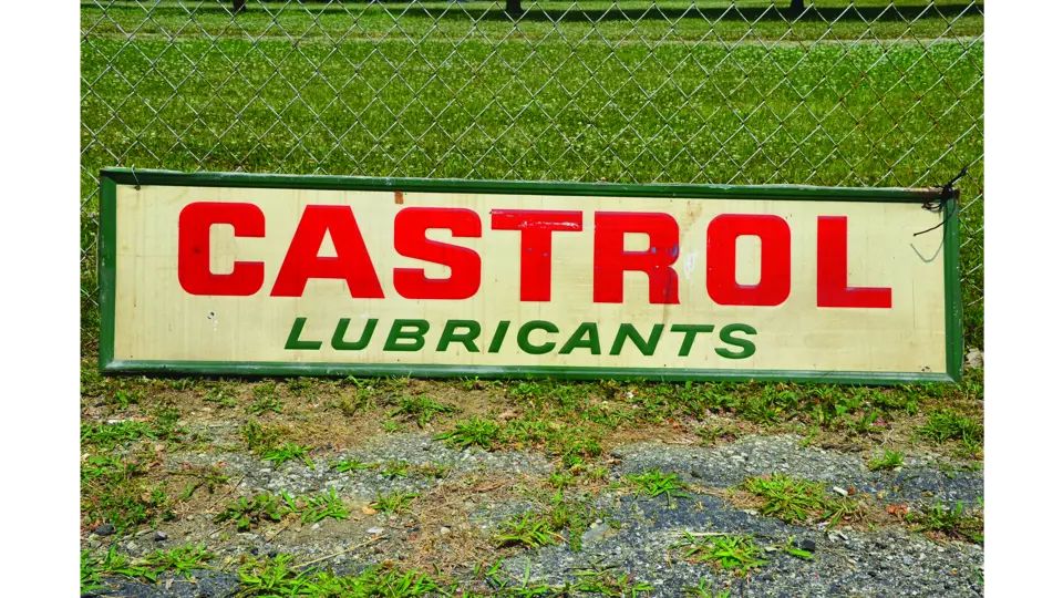 A single-sided, tin painted ‘Castrol Lubricants’ sign, 71.5 x 12."