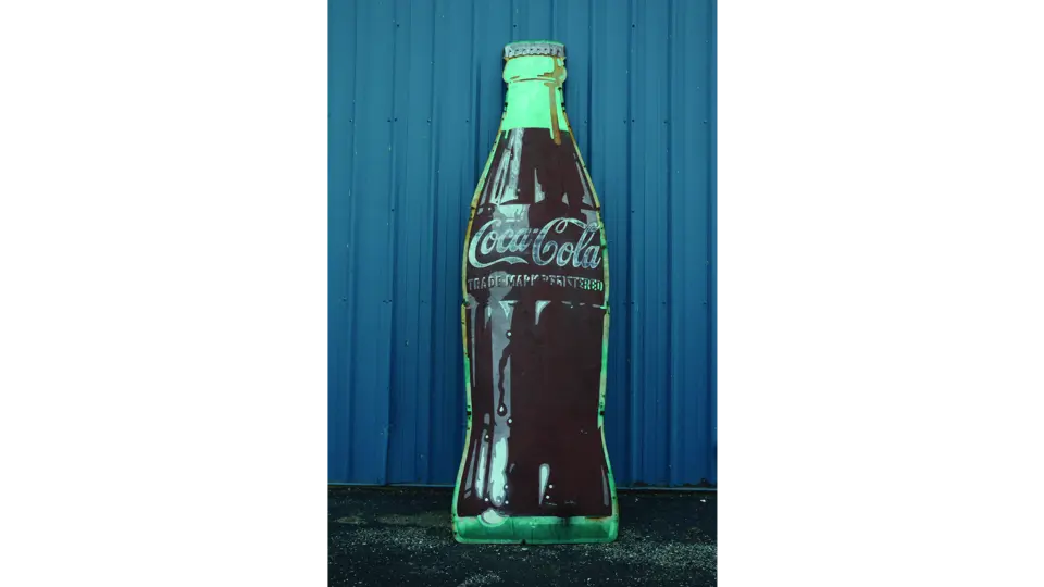 An extremely large, single-sided, tin painted ‘Coca-Cola’ bottle, 142" x 40."