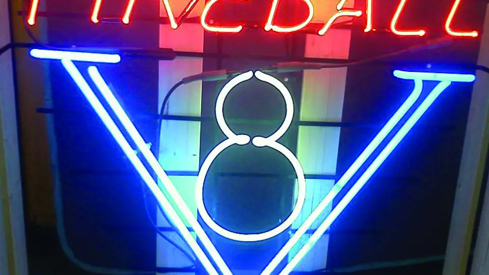 Fireball V-8 neon sign, 1940s, original, 42x42in.
