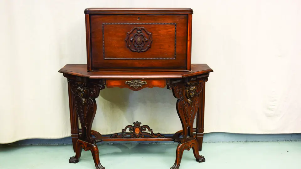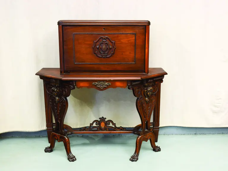 An antique drop front secretary’s writing desk, 45” width, 48” height