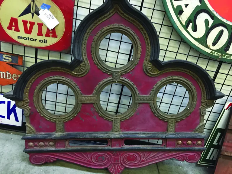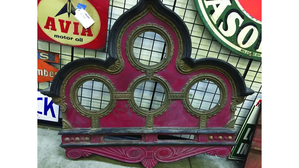 An ornate, cast iron, steam engine gauge surround, early 1900's,