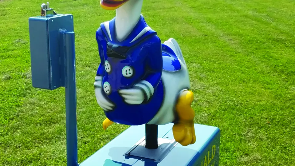 Iconic, Americana, 1950s, Vintage, Professionally Restored, Donald Duck cartoon character, Coin Operated Kiddie Ride