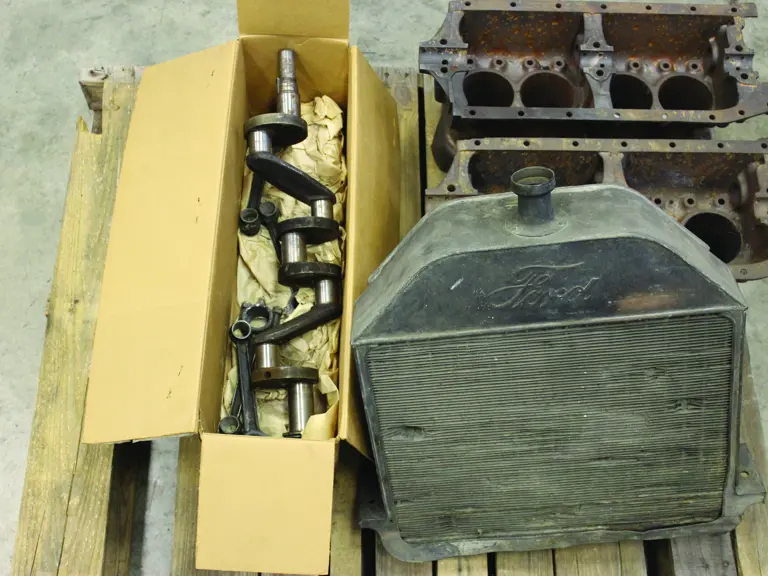 Ford model T cylinder blocks, radiator, crankshaft