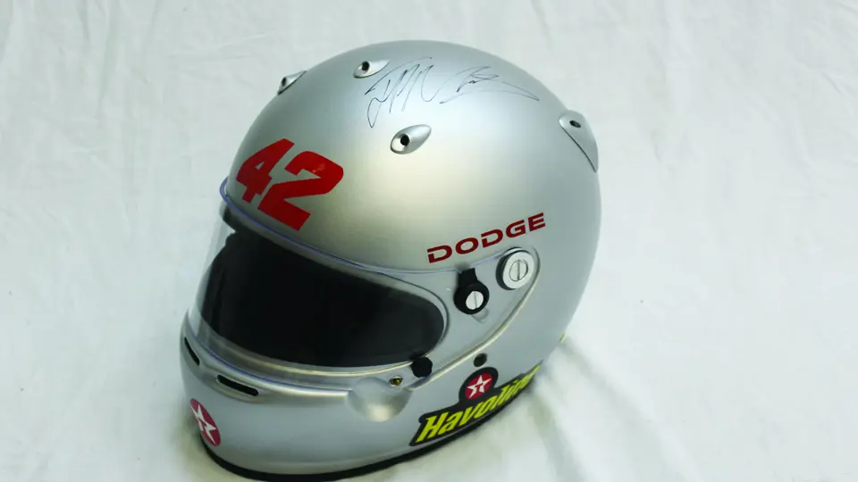 Juan Pablo Montoya: mock-up, signed, silver helmet