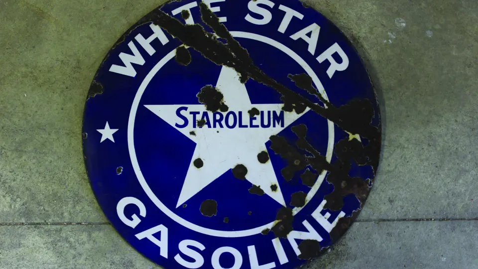 Double-sided, porcelain, White Star Gasoline 'Staroleum' double sided sign