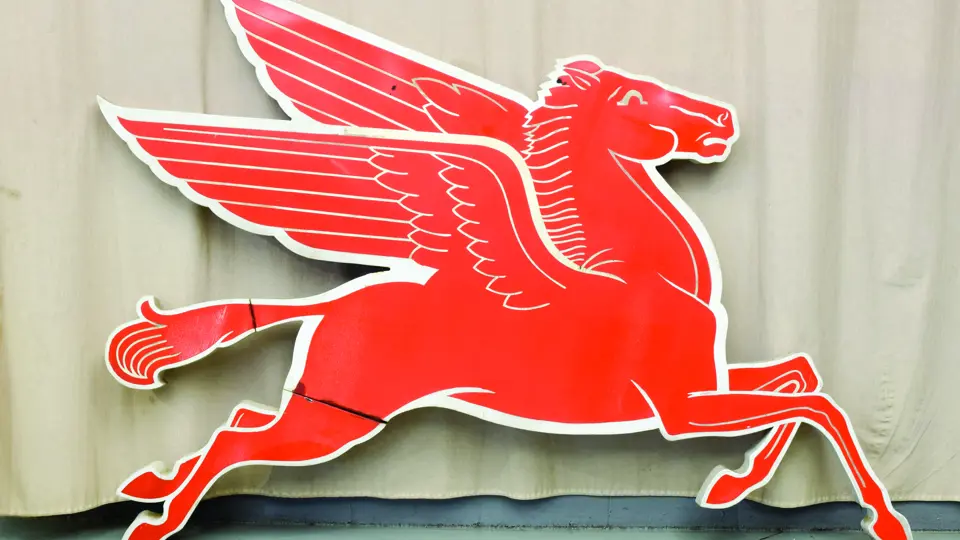 Right facing, porcelain Mobile Pegasus sign, circa 1950s.