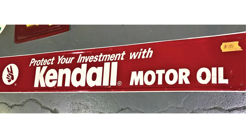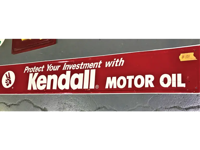 Self-framed, painted tin sign