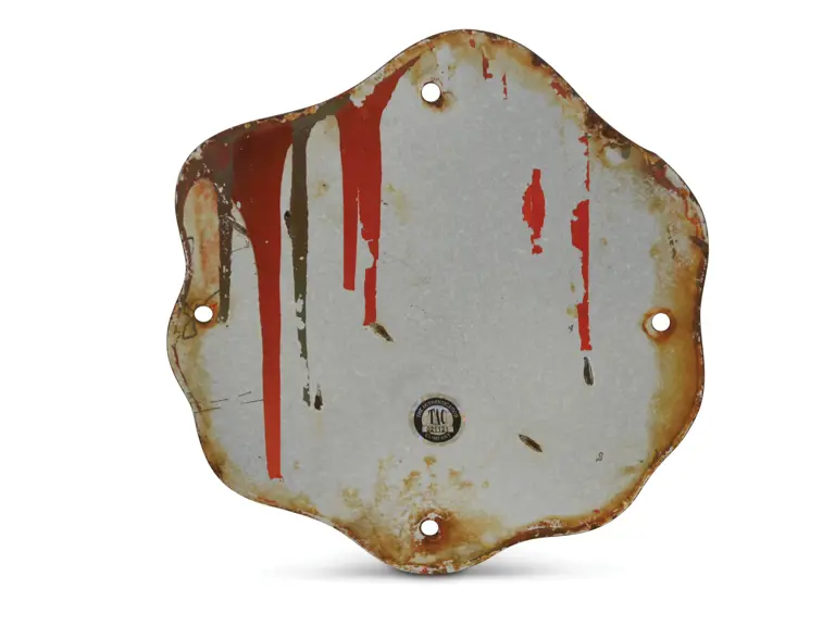 has excellent gloss and color, field is clean, grommets are missing with tiny chips at mounting holes