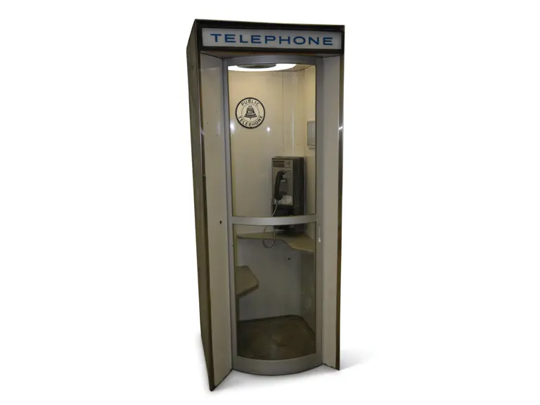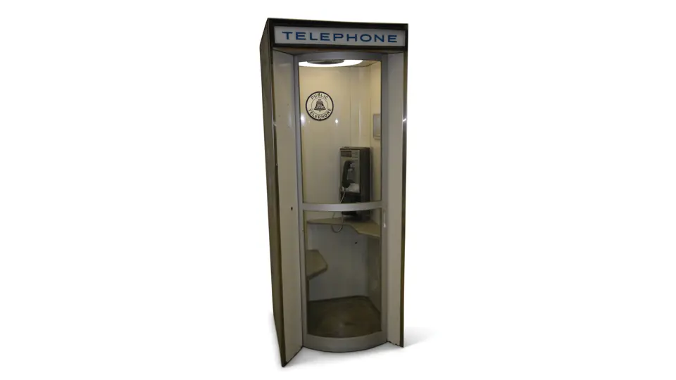 in good condition, includes the pay phone and small SSP Telephone sign inside, the glass door revolves back, light and fan both work