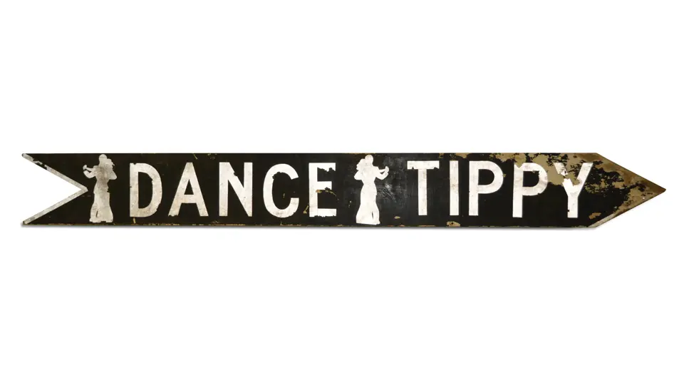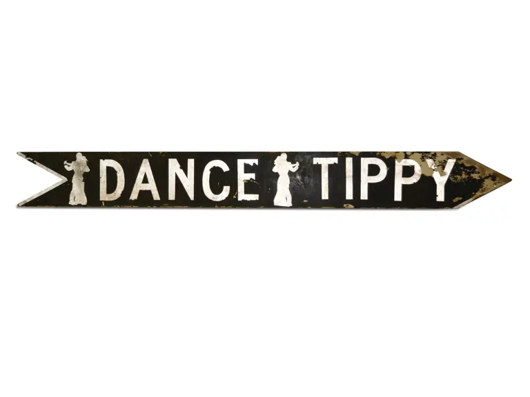 in good condition, has paint loss at the right-hand end, is made of a single board, letters are reflective tape