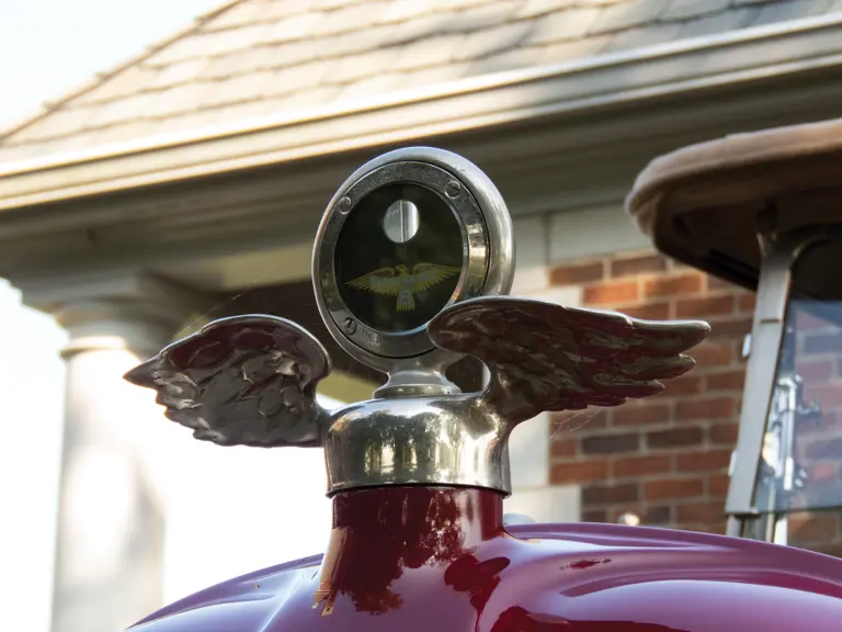 The early-style touring body for the Model A was produced by two coachbuilders, Millspaugh & Irish of Indianapolis, and Leon Rubay & Company of Cleveland, Ohio, the latter founded by a French stylist known for his rakish lines. Historian Fred Roe noted that about 75 examples of the touring were produced, some of which were the sport model with dual sidemounted spares, like the example offered here.