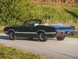 This 1970 Oldsmobile 442 Convertible was sold new through Wisecarver Oldsmobile of Berryville, Virginia. The beneficiary of a professional frame-off restoration, it is finished in Sherwood Green with a white top. The exterior sports a ram air hood and dual sport mirrors. The 455 cu. in. V-8 engine is paired to a four-speed manual transmission. The Parchment interior features bucket seats, a console, AM/FM radio, and clock. It is equipped with a power top, power steering, and power brakes. The car is accompanied by a copy of its build sheet, spare tire, and jack.