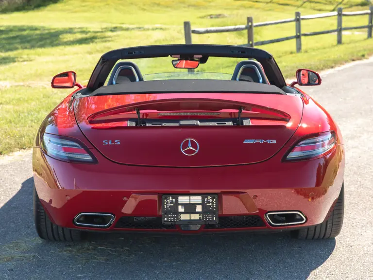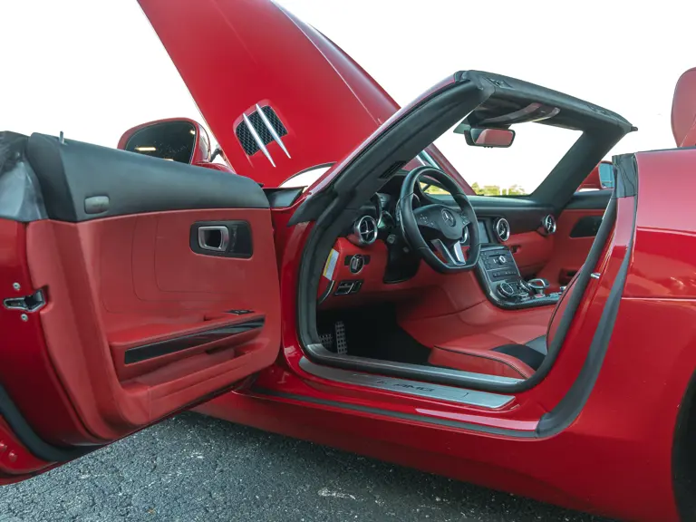 When introduced, the car’s 6.2-liter 563-horsepower, twin-cam V-8 engine was described by AMG as the world’s most powerful naturally aspirated engine. Notwithstanding special-edition sub-models, SLS AMG production between 2010 and 2014 reached approximately 12,000 units total. Of those, just 4,000 were of the roadster body style, and even fewer were United States-spec examples like the one offered here.