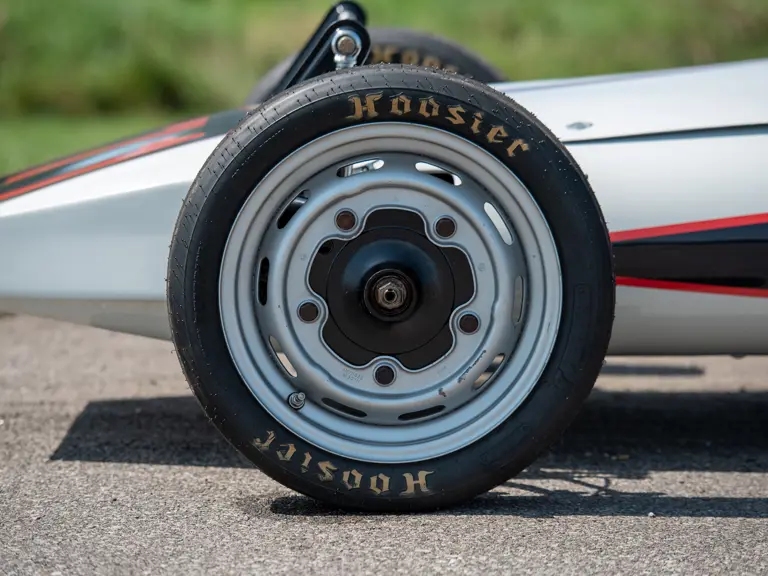 Volkswagen Beetle components used in Formula Vee typically include a four-speed manual transmission, link-pin front suspension, drum brakes, and steel wheels