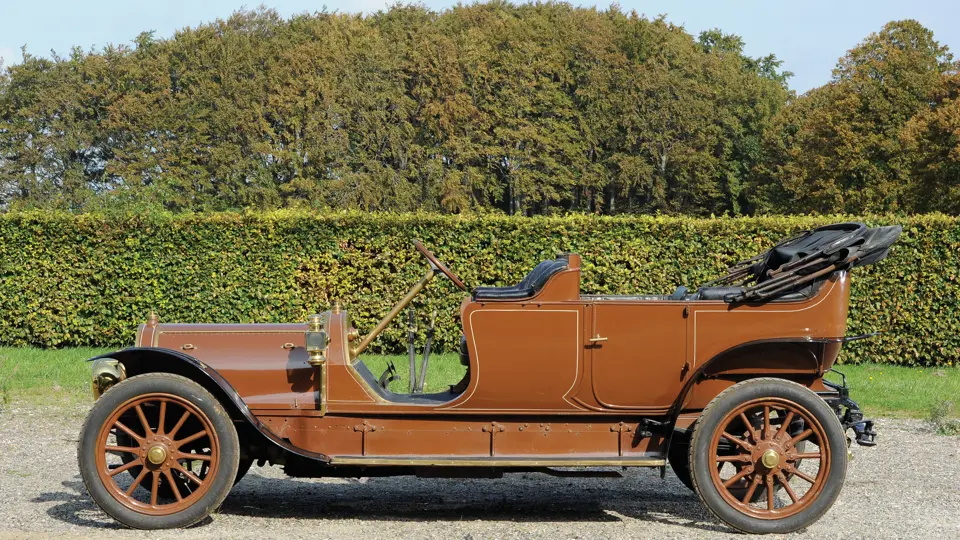 A well cared for older restoration, this Delaunay-Belleville Belvalette is handsome in medium brown with black wings. This is a lovely car in the Roi des Belges tradition and will benefit from recommissioning.