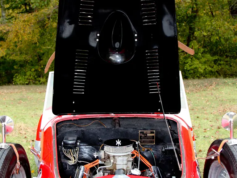 The car was reportedly found in long-term storage in the late 1980s. Sold to the present owner in the early 1990s as a work in progress, it was repainted in red and a new tan leather interior installed. At that time, the seat was lowered and moved back to improve ergonomics. The odometer showed just 26,000 miles. At fewer than 29,000 miles today, the car is fresh and exciting. The paint and upholstery remain excellent. The K2’s distinctive side-mount spare tires give the car a rakish look, and the four-barrel Cadillac V-8 makes it perform spiritedly. The Allard K2 was a rare commodity when new, and no less so today. With just 119 built, these cars become available quite infrequently.