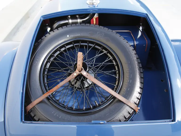 Photographs taken after the Voisin was sold out of the Grell estate show the aged but solid KE 27188 painted dark red and appearing to have been stored for many decades after years of use. In its restored condition this Avions-Voisin custom roadster is finished in a beautiful blue after having been stripped to the bare aluminum. The C11 engine is correctly restored, and the odometer now reads only 11 kilometers. Just as lovely are the red leather seats, tan carpet and black Rudge-Whitworth wire spoke wheels wearing Goodrich Silvertown Cord tires. It retains a spare tire in the trunk, has a raked, vee’d windshield with arched eyebrows and lights the road with period Scintilla headlights. Also retained are the distinctive pedals which bear initials of their brilliant creator. This unique Voisin custom roadster is guaranteed to turn heads wherever it is shown or driven; there is certainly none other like it, and it is presented with the unique opportunity to rediscover its history, as well as an immense potential value held by such one-off creations.