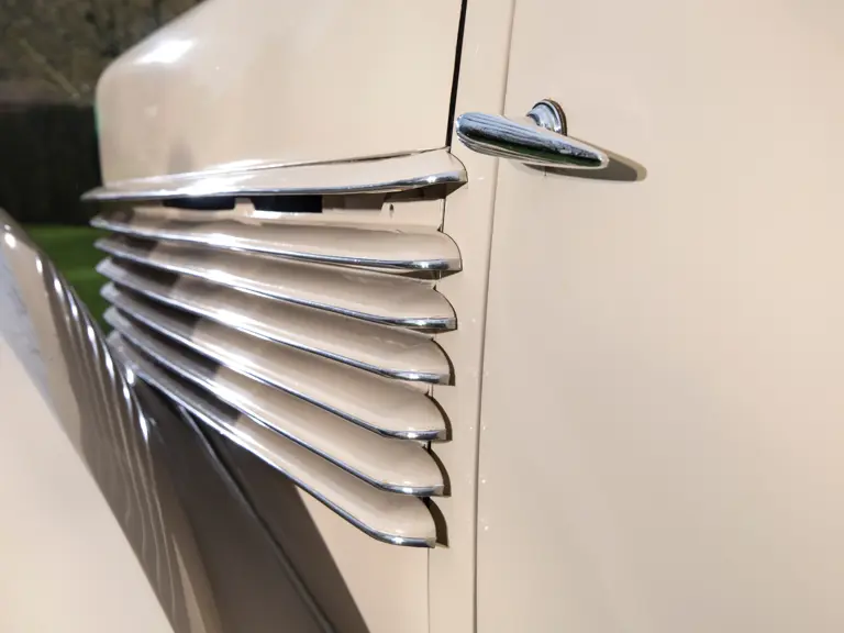 The cabriolet offered here is recorded in the late Josh B. Malks’s Cord reference guide, Cord Complete, as having been originally fitted with the same engine and body number it carries today; both the body number and serial number tags on the cowl are original, and the engine number on the serial number tag matches that of the block. Past history includes time in the well-known and highly regarded William A.C. “Bill” Pettit collection in Louisa, Virginia, a well-known stable recognized for its many well-maintained original examples, shown for years in the Pettit Family’s Museum of Motoring Memories. The car was sold in the mid-1990s and made its way to England, where it was owned by the well-known restorer and enthusiast Andy Saunders.
