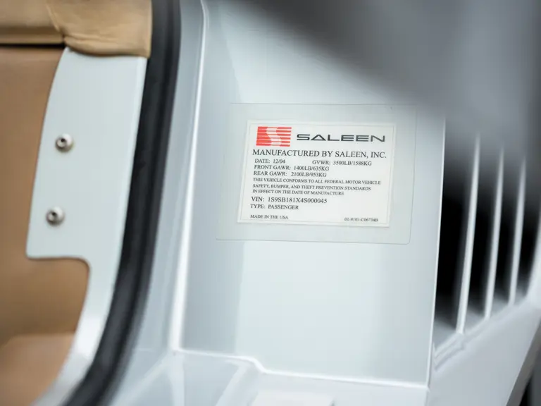 One of just eight S7s built for the 2004 model year and a total of 30 naturally aspirated S7s ever built, this car was sold new to its first owner that year through Ron Tonkin Gran Turismo of Portland, Oregon. Finished in Speedlab Silver over Beige, it was fitted with seven-spoke polished wheels. The car comes with a Certificate of Authenticity from Saleen confirming that it is the only S7 built with these exact colors and options. While only remaining with its first owner for two years, the S7 was sold to its second owner in 2006, who retained the car through 2014. In addition to the aforementioned certificate, the S7 is also accompanied by its original window sticker, owner’s manual, and tool kit.