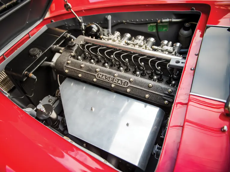 In November 1956, the unusual Maserati was exhibited at the Turin Auto Salon before returning to the factory, where testing and final assembly were completed. Factory build sheets were consequently dated on 5 December 1956. Following completion, the A6G was dispatched to the United States, destined for Charles Rezzaghi’s Mille Miglia Motors in San Francisco. A one-time competition driver for Alfa Romeo, Rezzaghi was an official Maserati importer from 1954–1957, and a fixture on the West Coast’s European car community and SCCA racing scene.