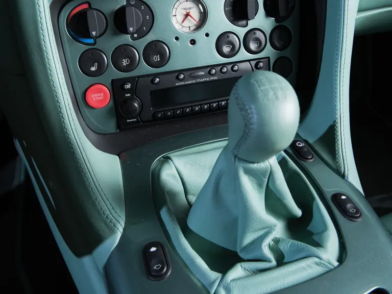 A collaboration between Andrea Zagato and Henrik Fisker, then Aston Martin’s chief designer, the new model was introduced to great acclaim at the Paris Motor Show of 2002. Like the DB4GT before it, it retained Aston Martin’s traditional grille, only larger, while the bodywork was fully unique, including Zagato’s trademark “double bubble” roofline, sculpted rear window, and a drop-down bootlid flanked by single round taillights. Special five-spoke alloy wheels proved a fitting complement to the car’s striking appearance. The interior was equally lavish and appointed with a special aniline leather with quilted seating, for a more luxurious, timeless appearance.