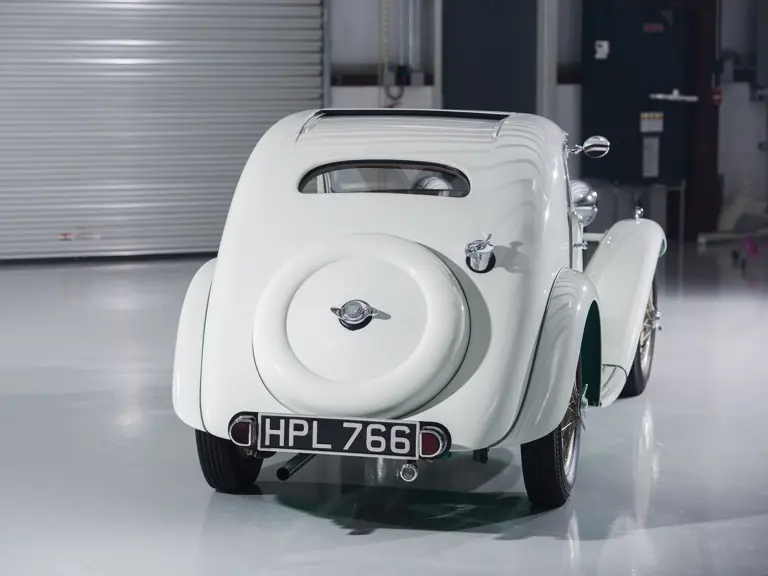 H.R.G. automobiles are scarce enough in North America, but surely the prize for any connoisseur of “Hurgs” would be this car, the only one-off coupe ever produced by the factory. It was commissioned by co-founder Major E.A. Halford in 1938, and it combined the 1½-liter engine of a Triumph Gloria and its accompanying four-speed gearbox with the widened chassis frame of one of his Halford Special racing cars. The body was attractively stitched together using the rear end of an MG PA Airline coupe and new front end sheetmetal by the firm of A. Crofts, with exceptionally long open front fenders and classic free-standing headlamps giving it a gorgeous and elegant appearance – unusual for an H.R.G., a company known for the purposefulness of its bare-bones racers.