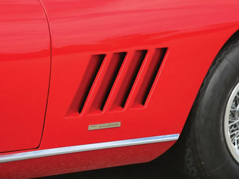 Almost identical in name, these two models were certainly not identical in ethos. The 275 GTS, constructed by Pininfarina, was aimed at emphasizing comfort and luxury while its closed sibling, the 275 GTB, bore a slightly harder edge and sporting nature. Both cars boasted a number of interesting features and advances that were sure to excite even the most seasoned of drivers. Technically, the 275 featured the final development of the classic single-overhead cam Colombo short-block design, which was now enlarged to displace 3,286 cc. Optimal weight balance was achieved by mounting the gearbox directly to the rear axle, a rear transaxle design that would become a standard practice in many ensuing Ferrari road cars. The 275 is also notable as the first Ferrari for the street to feature an independent suspension on all four wheels, an innovation that eventually took hold across automobile manufacturing.