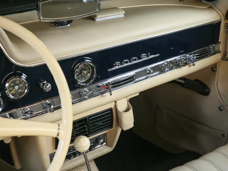They returned to Florida with the car and in 2007 decided to recondition both 300 SLs. Along with their other 300 SL, the Gullwing was shipped back to Kienle in Germany. During this trip, disc brakes were installed, the air conditioning was upgraded, and some engine work was done before the car was returned. Since the original restoration, the car has accumulated only 7,910 miles, driven regularly on short-distance trips. Now, as the couple faces the need to reduce their collection as they change residences, the Gullwing is reluctantly being offered for sale with their hopes that a new owner will appreciate it as much as they have.