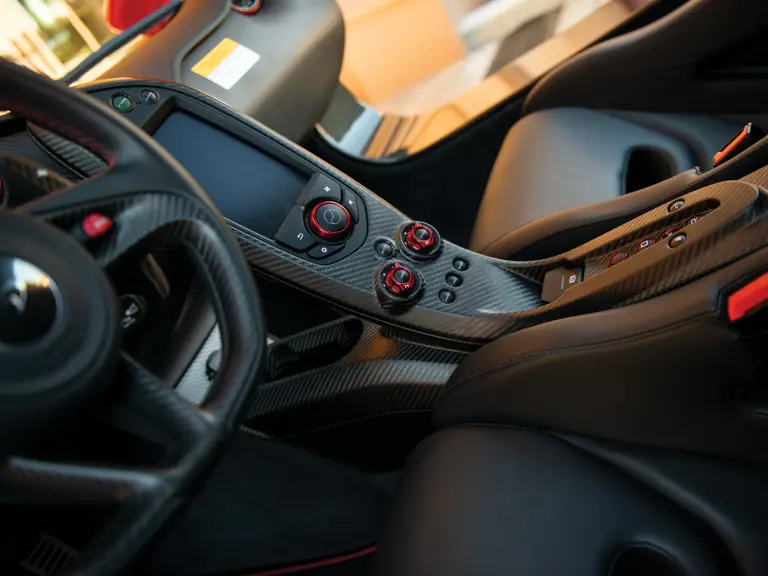 Purchased new by its original owner, Florida-based super car collector Don Wallace, Mr. Wallace worked directly with McLaren’s Special Operations (MSO) department to create not one, but two cars built to his demanding specifications. McLaren’s Volcano Red was chosen for the exterior color, an eye-catching and eye-watering $10,850 option. Further accentuated by black “stealth” finished wheels, the car’s Volcano Red finish is also featured on certain elements on the car’s interior, including the switches, vent bezels, door inserts, and contrasting red seat stitching. Upon selling the car in 2015, Mr. Wallace commented that “of all the cars I have raced over the years and the supercars that I have had the pleasure of owning, this P1 is by far the fastest street-legal machine I have ever driven. It is terrifyingly quick, and performance is absolutely incredible. Many thanks go to McLaren and the extra efforts they made on my behalf.”