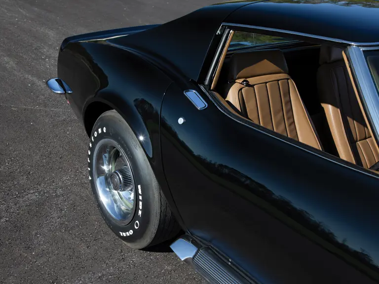Handsomely finished in Tuxedo Black with a Saddle interior, options include power windows, side-mount exhaust, Soft-Ray tinted glass, audio alarm, Posi-Traction 3:70 differential, and four-speed close-ratio transmission. This exceptional ’69 L89 presents a rare chance to acquire one of the best of the best Corvettes available.