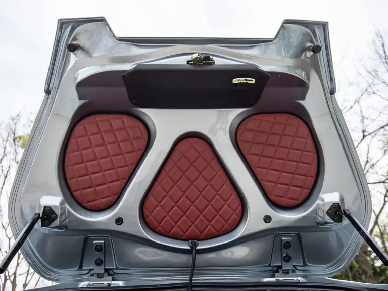 This DB AR1 is the 88th of just 99 examples produced by the Aston Martin and Zagato partnership in 2003. It is presented in the stunning, one-of-one color combination of Ferrari Titanium Gray over Claret Red Leather with charcoal carpets trimmed in matching Claret Red piping. Since acquisition by the consignor this exclusive roadster has been carefully stored and presents “like new.” It is accompanied by all of its factory accoutrements including serialized manuals, tools, seat covers, and pair of factory-provided umbrellas.