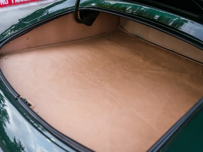The attractive roadster offered here is an early V-12 Series 3 Roadster, or Open Two-Seater (OTS), example produced during the 1971 model year, which is presented wearing the correct and desirable “small” bumperettes. The car’s early history is unknown, though it certainly benefits from a previous restoration in the signature Jaguar livery of British Racing Green over tan leather. The interior features a full suite of Smith’s instrumentation, factory radio, and air conditioning; correct details specific to early Series 3 cars of this type include the straight handbrake lever, fantail exhaust, and leather-wrapped steering wheel. A matching tan cloth top is fitted behind the rear seats and provides ample all-weather protection. This tidy and presentable Series 3 Roadster is perched upon a set of 72-spoke chrome wire wheels shod in a set of Toyo Extensa narrow-whitewall tires befitting a period-correct aesthetic.