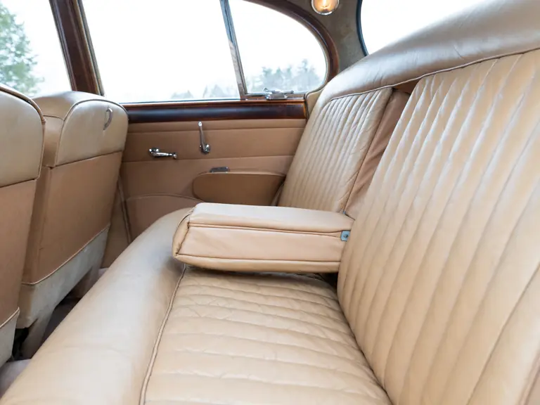 This 3.8-liter Mark 2 saloon was completed on 15 March 1961 and delivered new to the Duchess Auto Company of Millerton, New York via distributor Jaguar Cars of New York. An accompanying JDHT Trace Certificate shows that it was originally clad in the color combination of Opalescent Dark Green over Biscuit leather. The car’s original bill of sale shows that it was purchased one month later by George Brothers of Great Barrington, Massachusetts. After passing through two additional owners during the 1980s, it was acquired on Halloween 1987 by Robert Ducibella of Bethany, Connecticut.