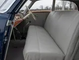 The interior was refinished in period-correct gray leather, providing a beautiful complement to the dark blue exterior; great pains were taken to match the patterns of the original upholstery. Ivory-colored instrumentation is set into a dashboard trimmed in walnut veneer, a rich finish suitable for a luxury car such as this.