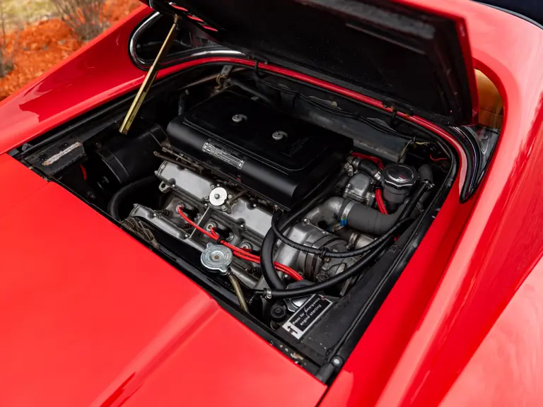 Massini’s report further indicates the car to have been optioned with power windows, air conditioning, Campagnolo wheels, flared fenders, and Daytona-style seats. Significantly, the Ferrari Classiche Red Book on file details the matching-numbers engine and gearbox. The extended documentation additionally contains a collection of invoices dating from 2009 to 2022 and indicate the level of care lavished on this 246 GTS over the last 10 years. The most recent work completed in January 2022 by Miller Motorcars of Greenwich Connecticut involved a 101-point inspection, oil and filter change, brake fluid flush, replacement of the ignition wire set, and installation of a new voltage regulator. The Dino will be accompanied by owner’s manuals, warranty card and owner’s service book, and a tool kit in addition to the previously mentioned Classiche binder.