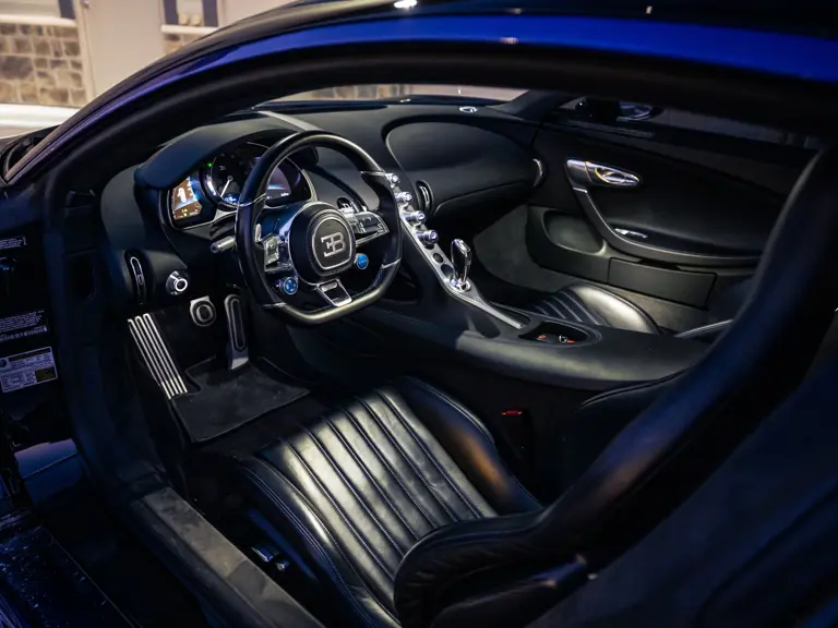 The well-chosen exterior look is mirrored by the interior, with Beluga Black leather and Alcantara enhanced by the addition of Spirit Blue stitching on the quilted seats and steering wheel. Befitting a car of this caliber, the cabin is purposeful and driver-focused while also being richly detailed; fine materials, jewellike switchgear, and exceptional craftsmanship are visible wherever the eye falls. Such quality came at quite a cost, and with all options taken into account, this Chiron boasted an MSRP of $3,058,500.
