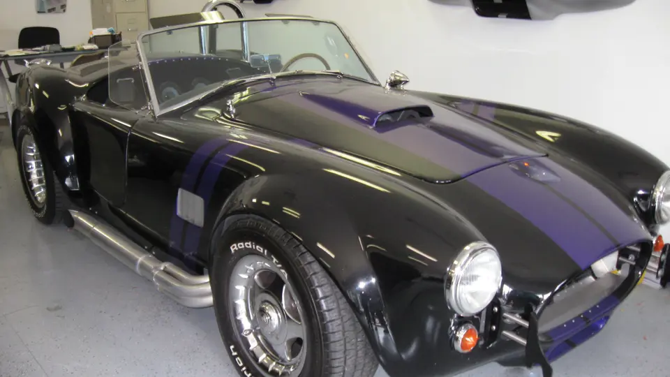 This Factory Five Cobra Replica is based on a 4-inch round tubular frame and features a TCI C-4 automatic transmission with a 2,800 rpm stall torque converter, disc brakes, an 8.8-inch Ford rear end, coil-over shocks, an AM/FM/CD player, and many high-performance parts.