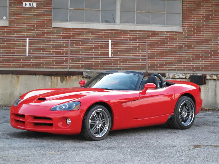 500 bhp, 505 cu. in. pushrod overhead valve V-10 engine with T56 Tremec six-speed manual transmission, four-wheel independent suspension, and four-wheel servo-assisted hydraulic drum brakes. Wheelbase: 98.8" - CarFax report available for review, While the Viper’s basic concept was drawn from the Izod show car of 1985, its development gathered steam in early 1988 during a casual meeting between Chrysler president Bob Lutz and design Chief Tom Gale. They envisioned a simple, high-performance “image car,” an idea that was also supported by Carroll Shelby, who was acting as a consultant for Chrysler at the time. The resulting Viper made its debut at the 1989 North American International Auto Show in Detroit and was an immediate hit, drawing unsolicited order requests and deposit cheques. With its incredible V-10 engine, stunning performance and race-inspired handling, the Viper legend was born, and its basic essence continued with careful development through the 2000s. A second generation was produced from 1996 through 2002, but the example offered here is the first of the acclaimed third-generation car. Completely restyled, the bodywork was modernized and remains fresh to this day. Engine output was increased to 500 bhp, largely due to a displacement boost to 505 cubic inches. This car has formed part of the vendor’s collection for many years, benefiting from dedicated care in a climate-controlled facility. It is strikingly finished in red with a black leather interior, with 9,748 miles indicated on the odometer. Please note that this vehicle is offered on a bill of sale only. It has been issued a non-repair certificate and therefore can not be titled and is not street legal. The specifics of the accident damage is not known by Auctions America.