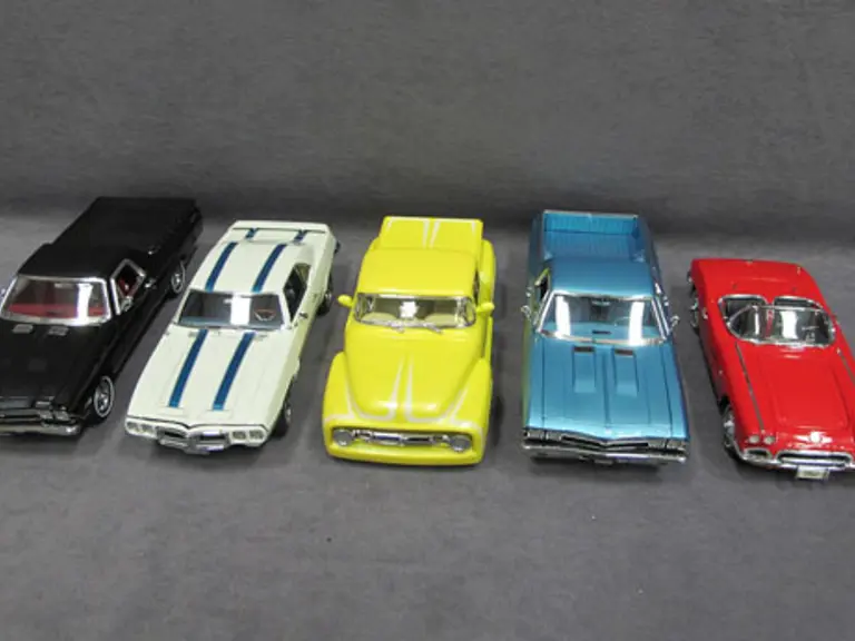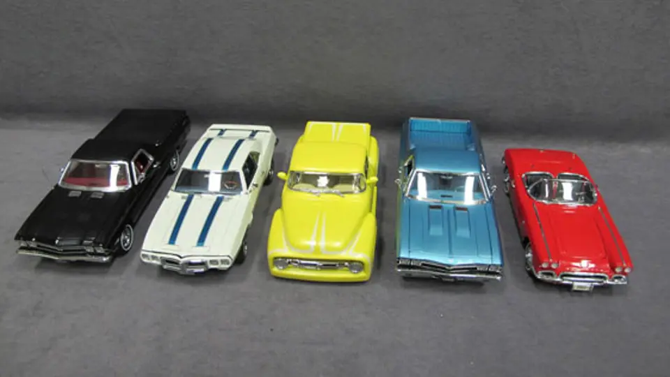 Five (5) 1/24 Scale Danbury Mint Cars - 1962 Chevrolet Corvette, 1968 Chevrolet El Camino SS 396, 1956 Ford F-100 Street Machine, 1969 Pontiac Trans Am, Black 1968 Chevrolet El Camino SS 396.