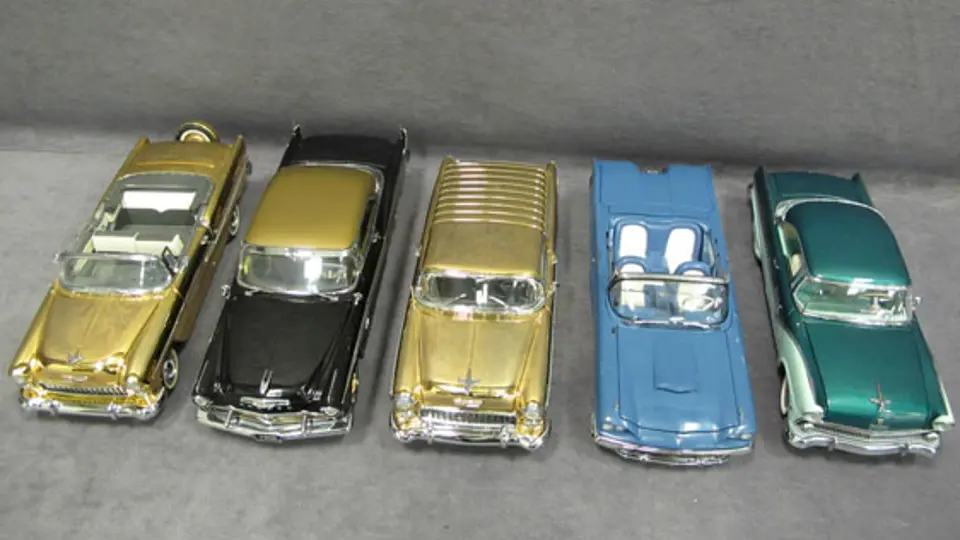 Five (5) 1/24 Scale Danbury Mint Cars - 1955 Ford Fairlane Victoria, 1955 Ford Thunderbird Convertible, 1955 Chevy Nomad, 1956 Desoto Adventurer, 1955 Chevrolet Bel Air.