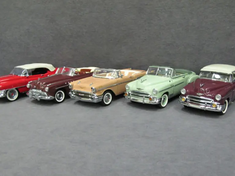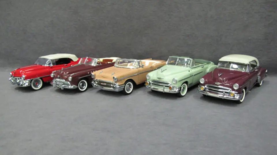 Five (5) 1/24 Scale Franklin Mint Cars - 1950 Chevrolet Bel Air, 1950 Chevrolet Styleline Deluxe, 1957 Chevrolet Bel Air, 1949 Buick Roadmaster, 1953 Cadillac Eldorado.