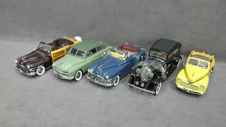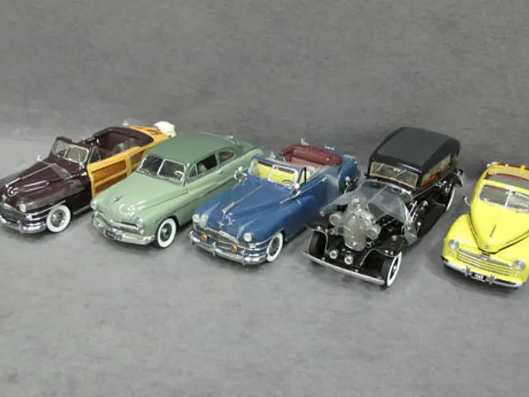Five (5) 1/24 Scale Danbury Mint Cars - 1948 Ford Sportsman New in Box, 1932 Cadillac V-16 Sedan, 1948 Chrysler New Yorker New in Box, 1949 Mercury Coupe New in Box, 1948 Chrysler Town & Country New in Box.