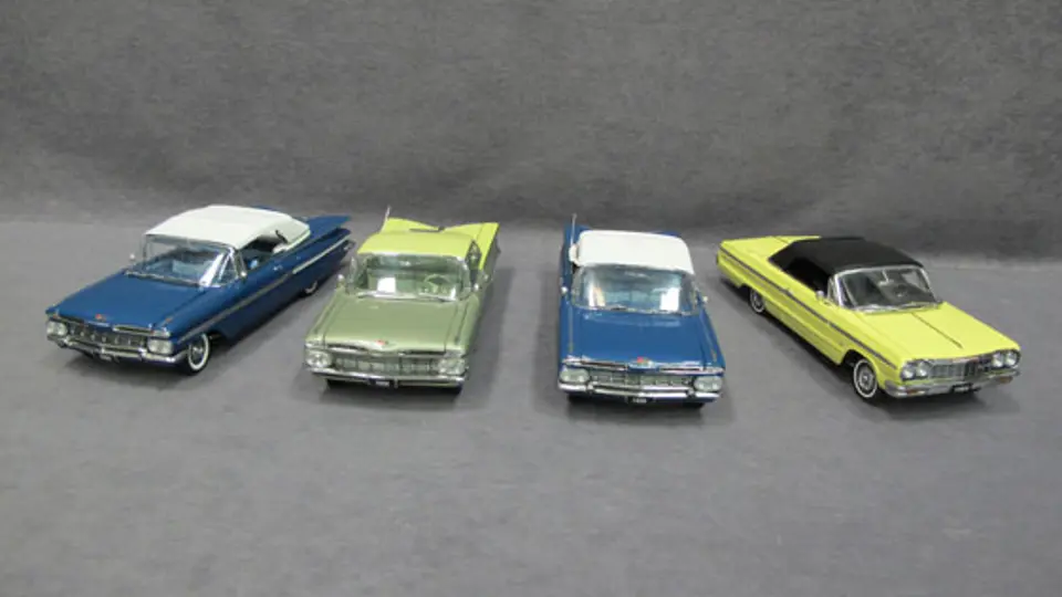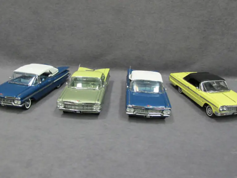 Four (4) 1/24 Scale West Coast Precision Diecast Cars - 1964 Chevrolet Impala, 1959 Chevrolet Impala, 1959 Chevrolet Impala Hardtop, 1959 Chevrolet Impala.