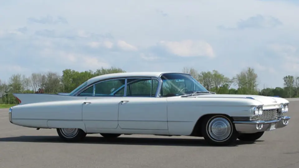 This is an exceptional 66,596 mile, original six-window sedan that has only two previous owners. The Series 62 originates from Jerome Cadillac in New Kensington, Pennsylvania; accompanying documentation confirms its provenance. The careful buyer drove the car 17,000 miles over the first six years; the car was sold to an acquaintance that, as a research scientist, turned out to be as meticulous in his attention. The car has been stored in a heated, sealed floor garage and its condition confirms this claim. Powered by a 390-cid, 325-hp V-8 that is mated to an automatic transmission; this car is equipped with air conditioning, automatic headlight dimmer, original radio, all working gauges and power seat, windows, steering and brakes. The interior is mauve in color; the Olympic White paint is 95% original and both are well-preserved, as is the nearly flawless trim and brightwork.