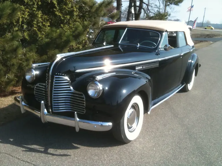 This Buick Roadmaster Sport Phaeton (four door), sports a 320.2-cid inline eight-cylinder overhead-valve engine producing 141-hp and is mated to a column-controlled three-speed manual transmission. The phaeton is a recently restored car that has benefited from an engine rebuild, a new tan leather interior, a new soft-top, fresh paint, new wide whitewall tires, new chrome hubcaps and trim-rings. A heater and defroster were standard equipment. The Phaeton was the most expensive Roadmaster produced, and quite uncommon, as only 235 were made. A wheelbase of 133-inches makes this a very large and elegant six passenger car.