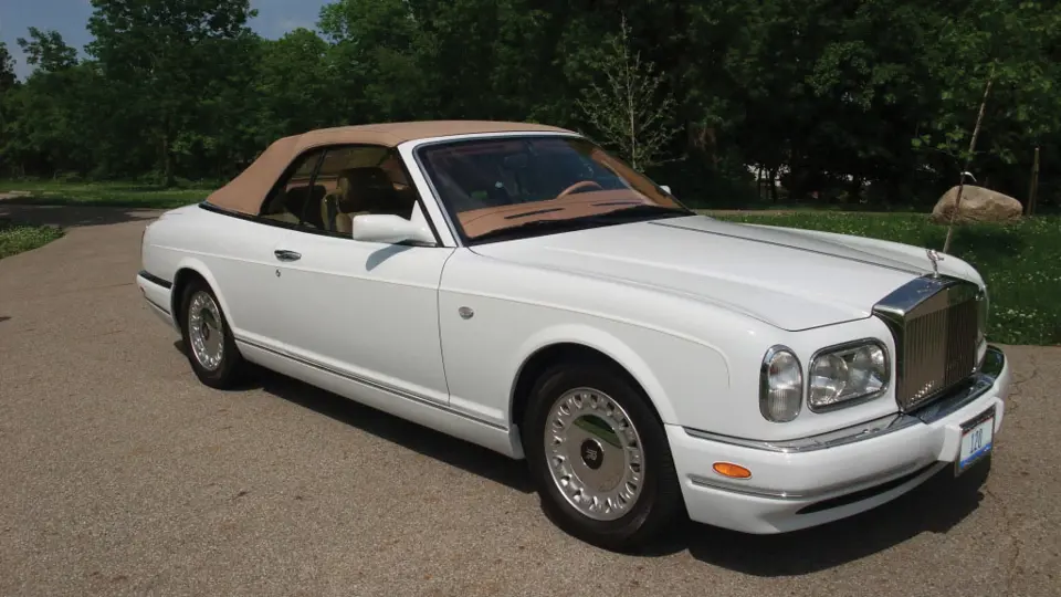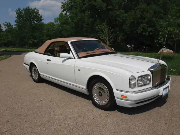 This beautiful 2000 Rolls-Royce Corniche convertible has a V-8 engine and a four-speed automatic transmission. This four passenger car offers nearly the ultimate in automotive luxury, which shows in its superb white paint and tan leather upholstery. It is a front engine, rear-wheel drive vehicle that needs few options. The front bucket seats present the ultimate in seating comfort, with a console to separate the two. MK Motronic fuel injection keeps the engine running smoothly, while helping to provide a surprising 420-hp from the 412-cid power plant. This is a wonderful driver that can turn heads or slip silently by.