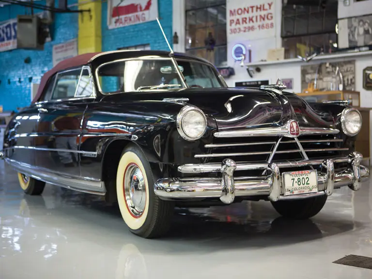 This Hudson 8 Convertible Brougham is presented in very nice condition and conveys a sporty elegance with black finish and dark red interior. These colors are greatly complimented by a burgundy hydraulically-activated soft-top. The Commodore also has hydraulically-activated windows, Hudson Weather Control, AM radio, clock, added lap-belts and owner’s manual. The odometer reads 1,132 miles.